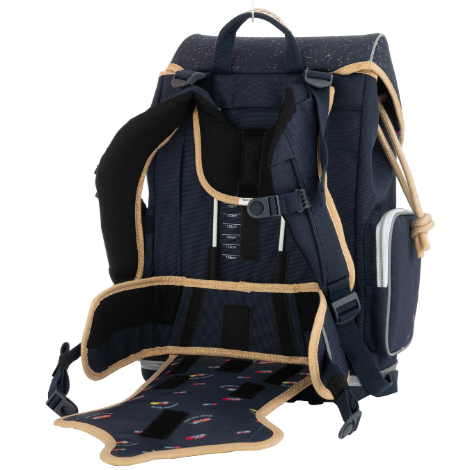 The design of this school backpack focuses on freedom of movement and even weight distribution. This is how it works: